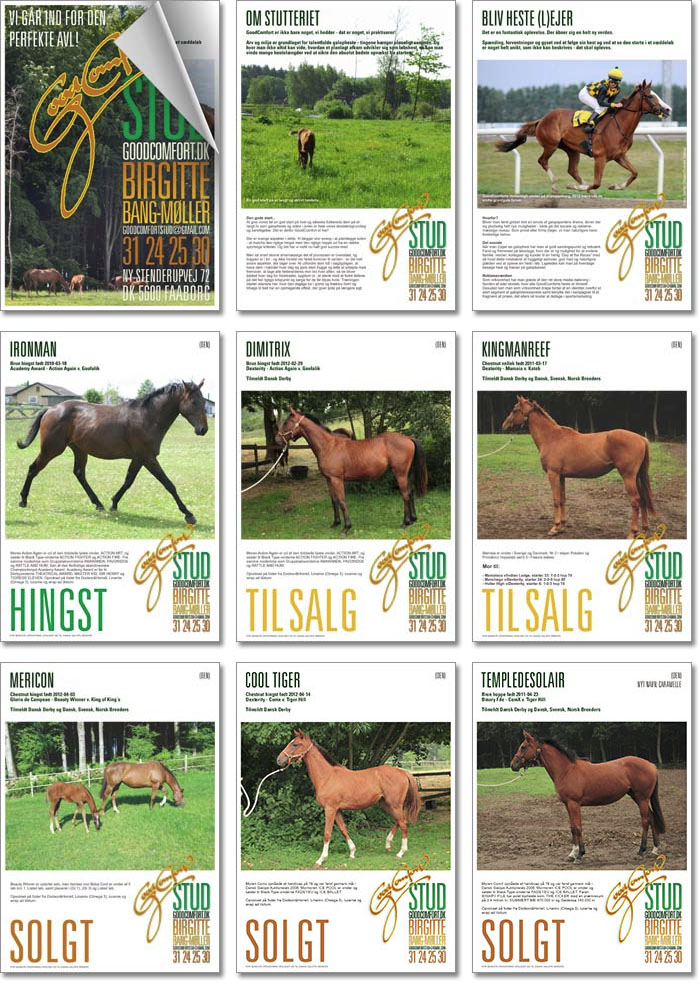 GoodComfort Stud is a Danish stud farm specializing in breeding of thoroughbred race horses. The logo was originally speedmarker drawn in 1998 and has since then been scanned and traced - special care was taken to preserve the characteristic "roughness" of the original hand drawing to maintain the initial dynamics of the logo.