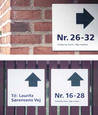 Klint & Co. were asked to design a sign and information system for Frederiksberg forenede Boligselskaber, a large housing establishment.