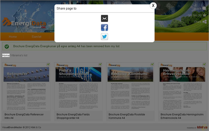In this example the thumbnails represent sales-brochures making it easy for the sales operator to select relevant brochures for sharing with a specific recipient via email or social media