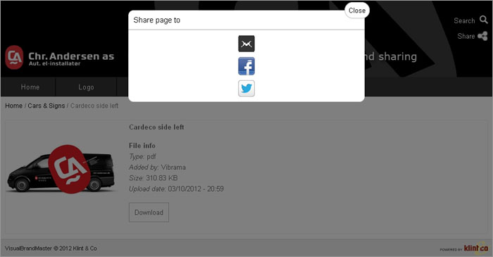 VBM offers an extremely fast and efficient way to share selected files via email/social media to anyone and is above all a highly ACTIVE sales-tool!