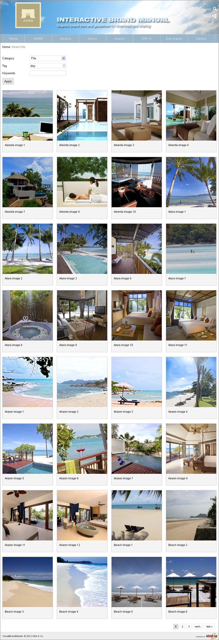 Search works across all categories among pre-defined search-tags and keywords. In this example the tag "day" was used and resulted in the follwing image-results